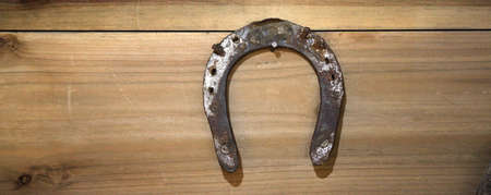 Old horseshoe on a rustic wooden background