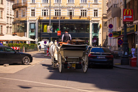 Horse Drawn Cab in the city of Vienna - VIENNA, AUSTRIA, EUROPE - AUGUST 1, 2021