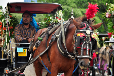Yogyakarta, Indonesia - August 12, 2013 : Delman or Andong the traditional vehicle or ground transportation equipment in Java, Indonesia. It is used as a transportation by the people in Java