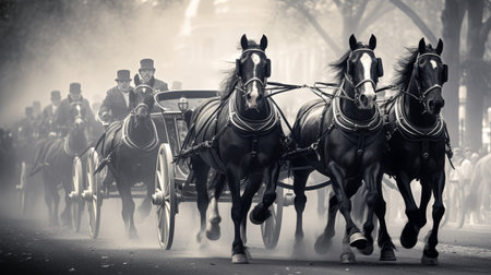 Monochromatic Carriage Race spirited horses compete