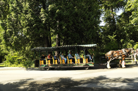 Logan, Utah, United States - August 31, 2018: Heritage horse carriage taken in Logan city center, Utah