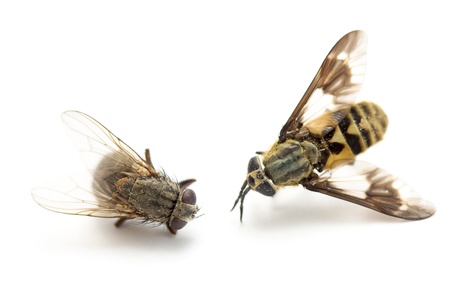 Macro shot of dead gadfly isolated on the white background. Shallow DOF