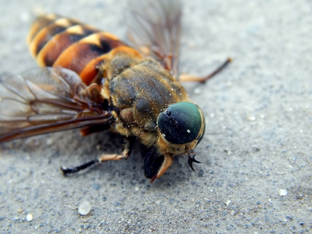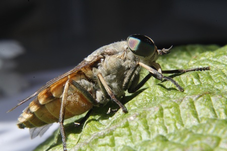 Macro view of a horsefly. These insects are often large and agile in flight, and the females bite animals, including humans, to obtain blood