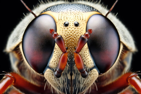 Ultra-macro shot of a robber fly, showcasing its intricate features and predatory demeanor.