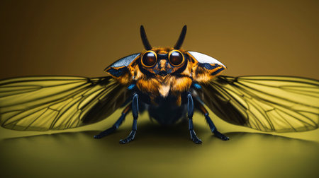 An AI generated illustration of a cicadas insect with black glasses perched on its wings