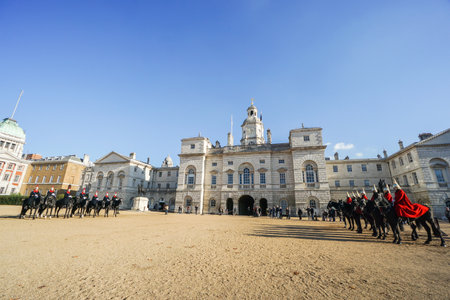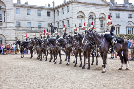 London, United Kingdom - September 6, 2021 - Changing The Queen’s Life Guard in the large square between Old Admiralty building and Admiralty House.