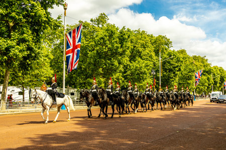 LONDON, UNITED KINGDOM - JUNE 14, 2016: Royal Guards parade at the Admiralty House in London, England, United Kingdom on June 14, 2016
