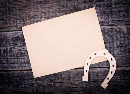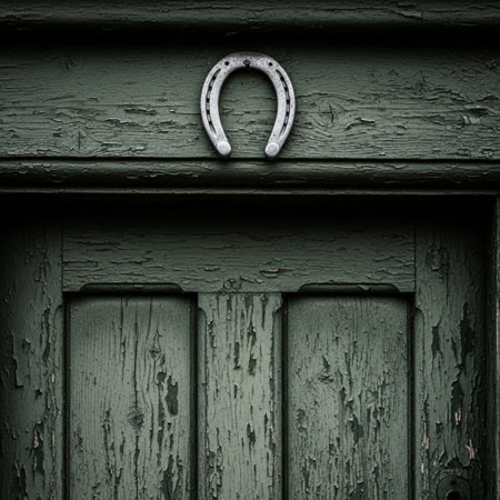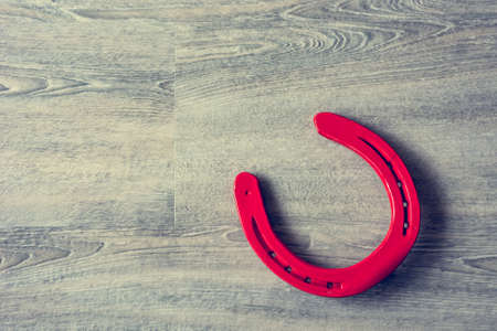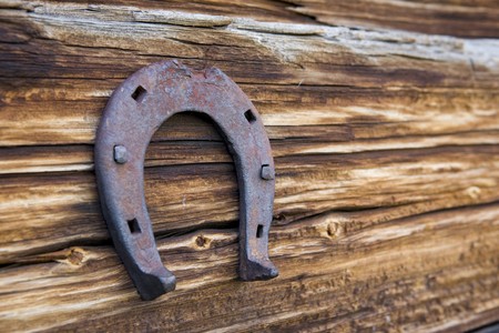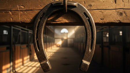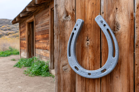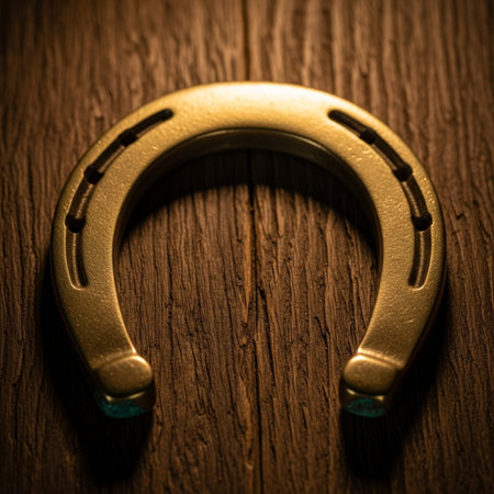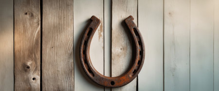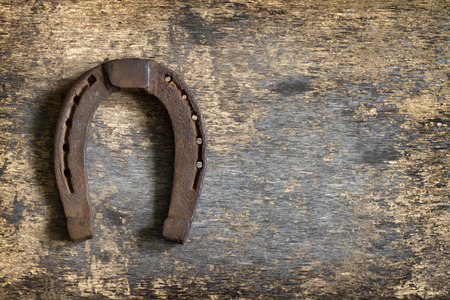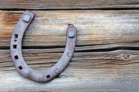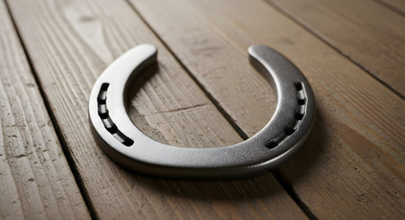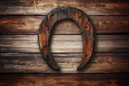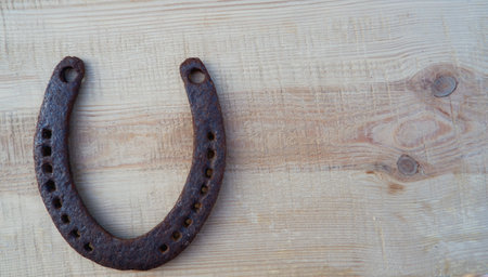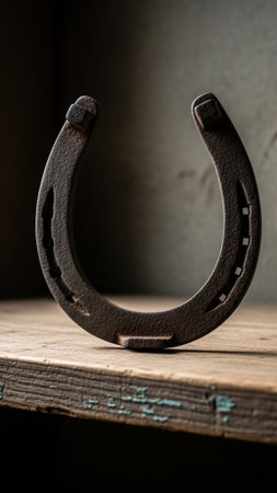 A horseshoe is placed on a textured wooden surface, reflecting tradition and fortune.
