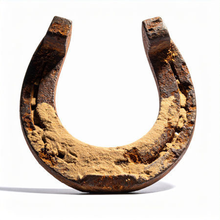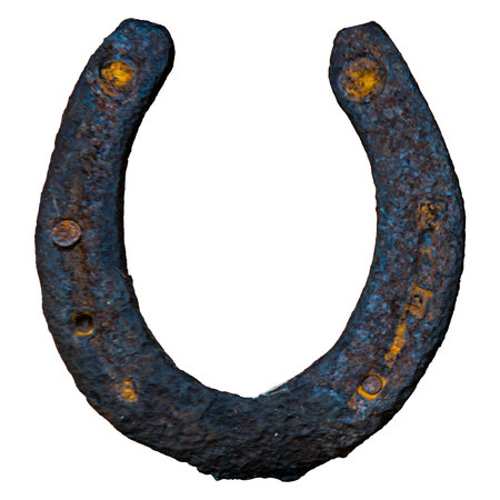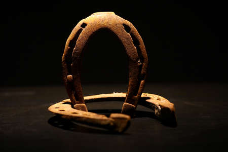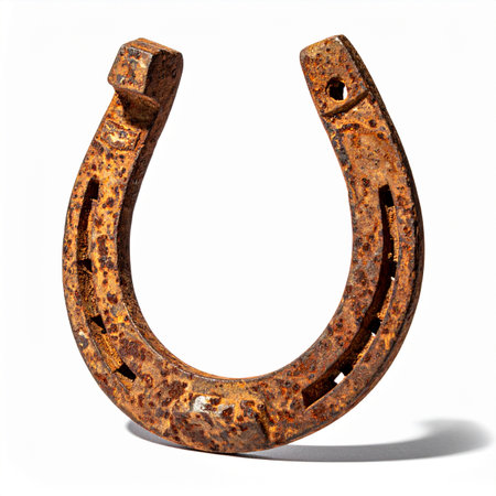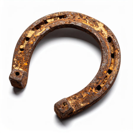 An old, weathered horseshoe, covered in rust, stands as a timeless symbol of luck and fortune.