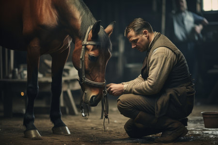 farrier trimming and shaping horses hooves, created with generative ai