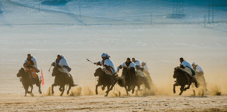 Uzbekistan, Parkent-08/03/2019: Ulak-Kupkari (buzkashi) -traditional horse riding competition in Uzbekistan