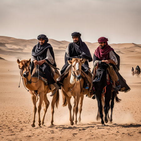Bedouins in typical clothing in the desert