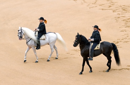 Seville, Spain - April 23, 2015: Horse riders taking a walk by the fair of Seville. The Seville Fair Feria de abril de Sevilla is one of most important celebration of the city, it begins one or two week after easter Holy Week
