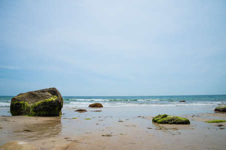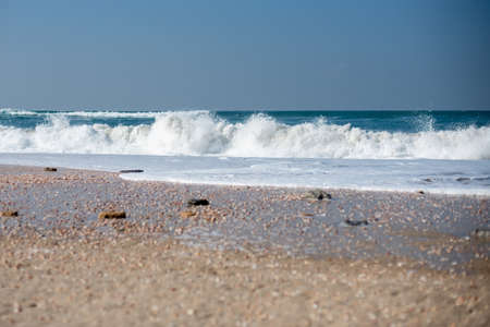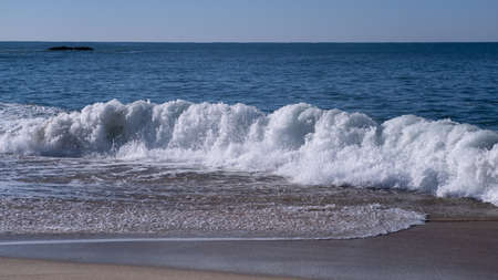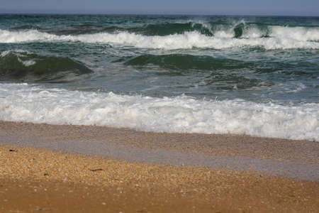 Waves in the Ocean Crashed on Sand Beach, sunny day