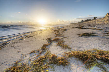 Tropical Gulf Coast ocean beach landscape scene. Beautiful scenic tourist travel destination location. Relaxing Gulf Coast seaside beaches.