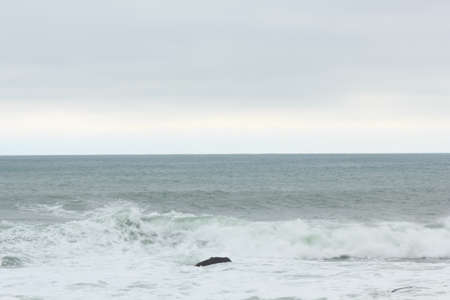 Vibrant beautiful coast of sea of Japan . Ocean horizon. Nautical background