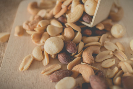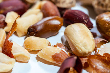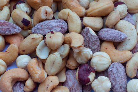 Close-up Mixed nuts. food background. Snack Fresh Nuts.