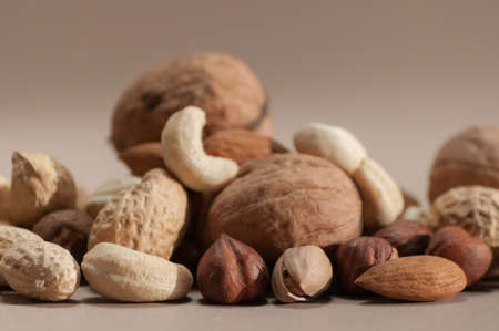 assortment of natural nuts of cashews, hazelnuts, peanuts and almonds