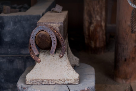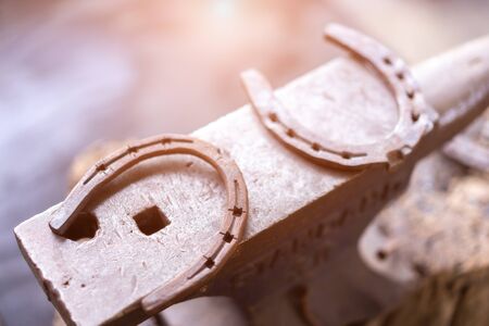 work of horseshoe in forge of horse's hoof iron horseshoe close-up, selectvr focus