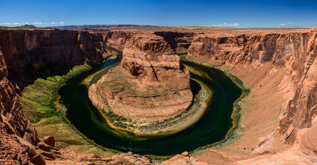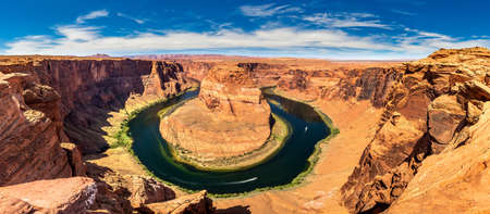 Panorama of Horseshoe Bend in a sunny day, Arizona, USA