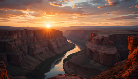 Stunning Canyon with River Majestic Landscape View with Red Rock Formations and Serene Waterway.