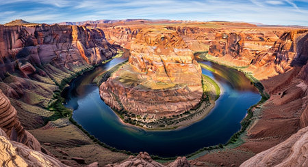 Horseshoe bend: majestic panoramic vista of the colorado river carving through ancient rock formations