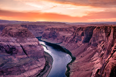 Sunset at the Horseshoe bend is a Horseshoe shaped incised meander of the Colorado river, Page, Arizona.