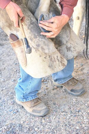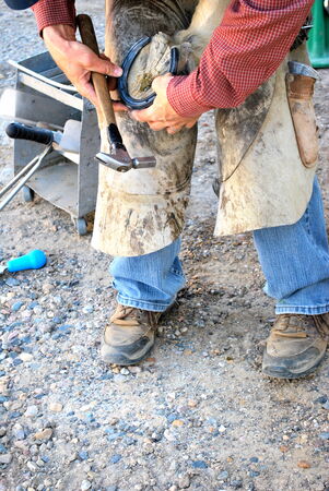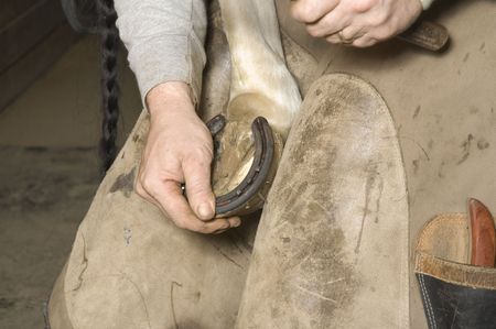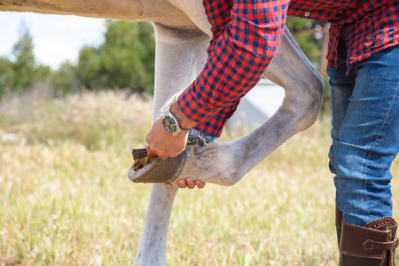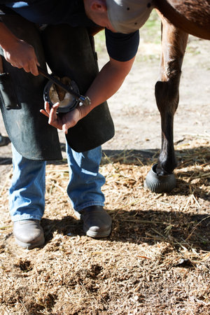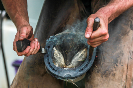 The safety of both horse and rider are very important. A farrier making sure the horseshoe is secure.
