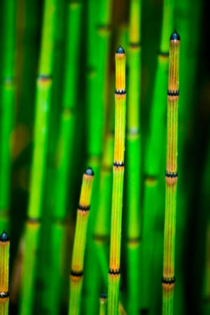 Closeup of Horsetail plant in a japanese garden- Equisetum hyemale