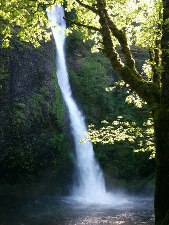 Beautiful waterfall in the mountains of the Columbia River Gorge Oregon, USA