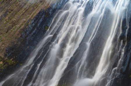 A beautiful waterfall in the rocks. Photo of falling water. Long exposure.