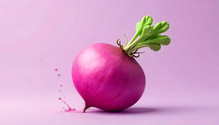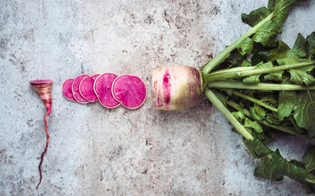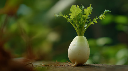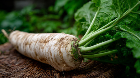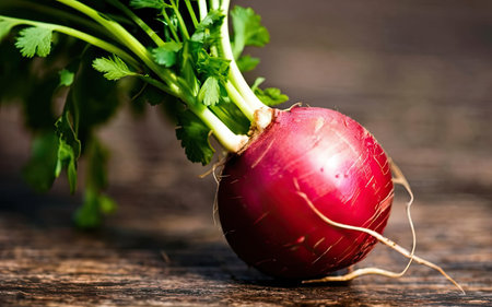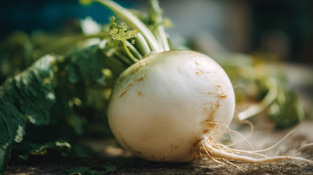Fresh turnip with vibrant green leaves, showcasing nature's healthy bounty