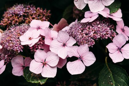 Hortensia plant with beautiful flowers, closeup. Toned in pastel colors