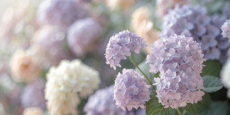 AI Generated. Delicate Lavender Hydrangeas Floral Background