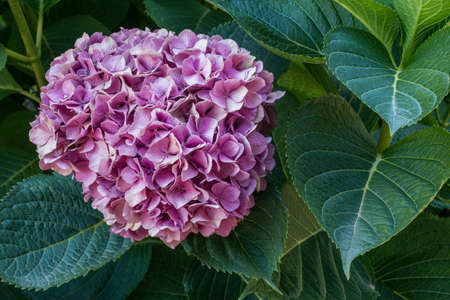 Purple Hydrangea flower in a garden. Pink hydrangea flowers in the garden with blurred background.