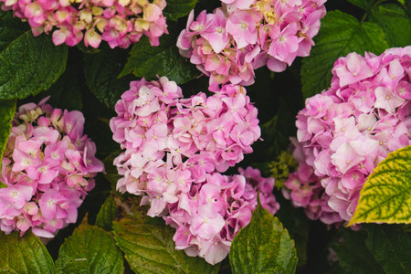 Closeup of pink Hortensias flowers