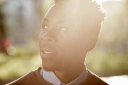Close-up portrait of african american man in sunny summer evening