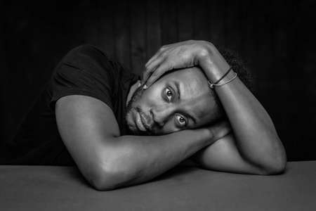 Black and white handsome man resting his head on an arm