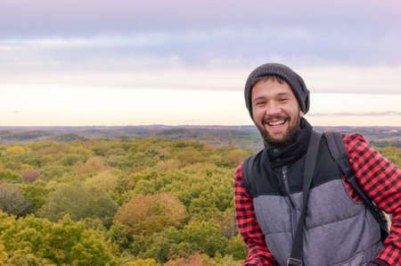 Portrait of a happy young man on the picnic into the wood
