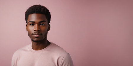 Photo Of A Calm African American Male Model With A Brown Hair Isolated On A Flat Blurred Deeppink Background With Copy Space, Banner Template. Generative AI