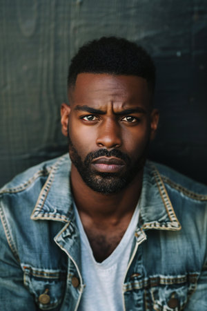 Portrait of a handsome african american man in denim jacket.