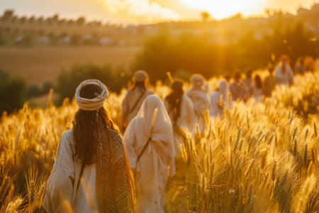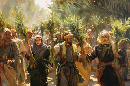 Under the Warmth of the Spring Sun: A Ceremonial Procession of Believers Wielding Palm Branches in Spiritual Solidarity