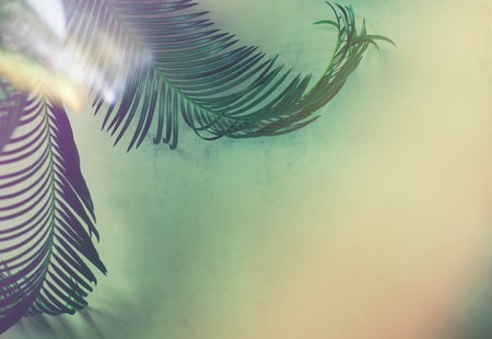 Tropical palm leaves on colorful background with soft shadows