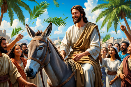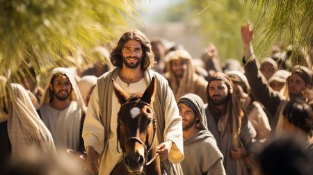 AI Generative Traditional Christian Palm Sunday, triumphal entry of Jesus Christ into Jerusalem