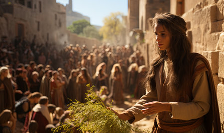 PalmSunday on the occasion of Jesus' entry into Jerusalem --ar 16:9 --v 6 Job ID: b6ffcdd3-2681-4e19-bc40-c3963d8c9e70