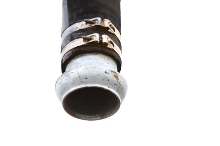 Old black pipe tube hose isolated on white industrial detail