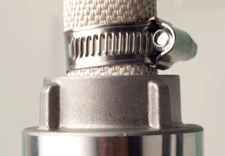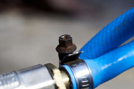 Connection with a hose clamp to the compressor close up