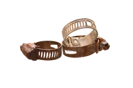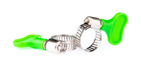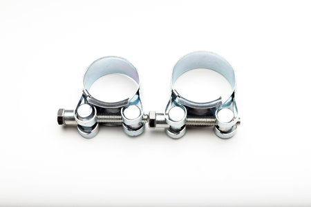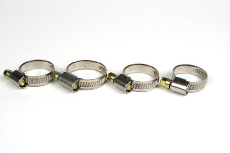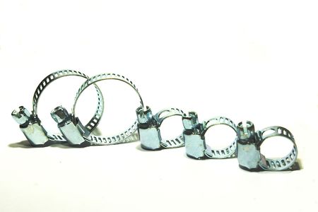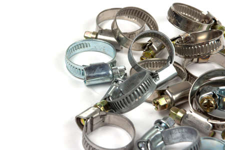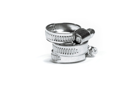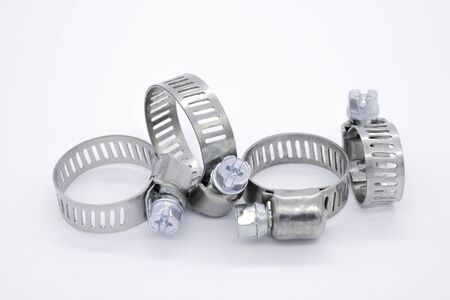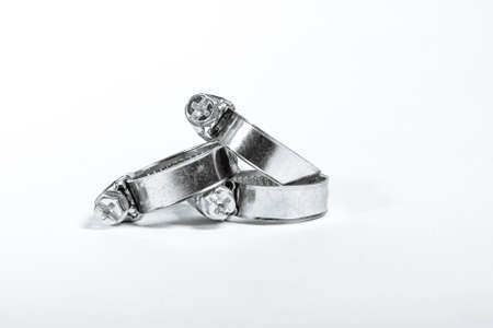 Metal hose clamps on isolated white background