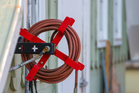 Ready to tackle any flame. Cropped shot of coiled fire hoses.