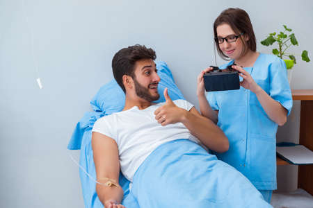 Infected patient in quarantine lying in bed in hospital, coronavirus concept.